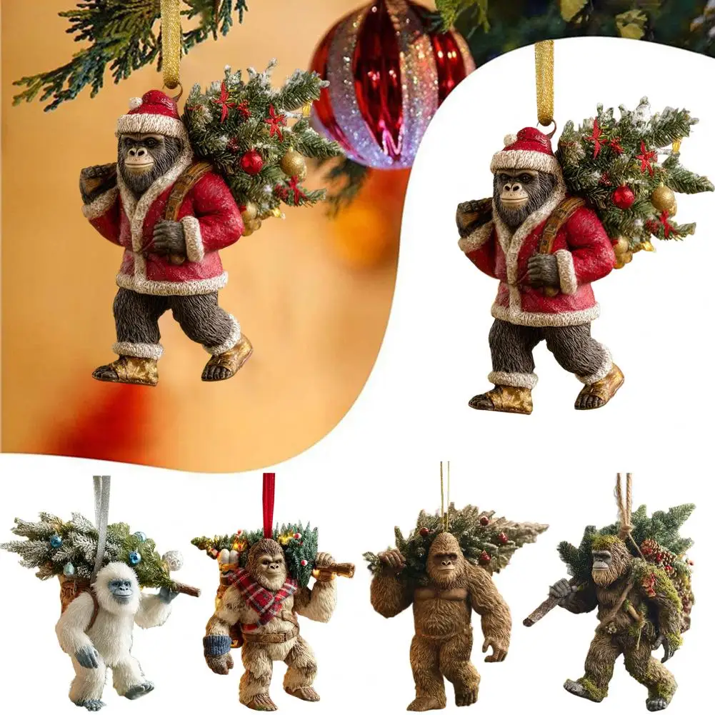 Big Foot Carrying Christmas Tree Hanging Ornament Christmas Tree Ornaments for Holiday Home Party Decor