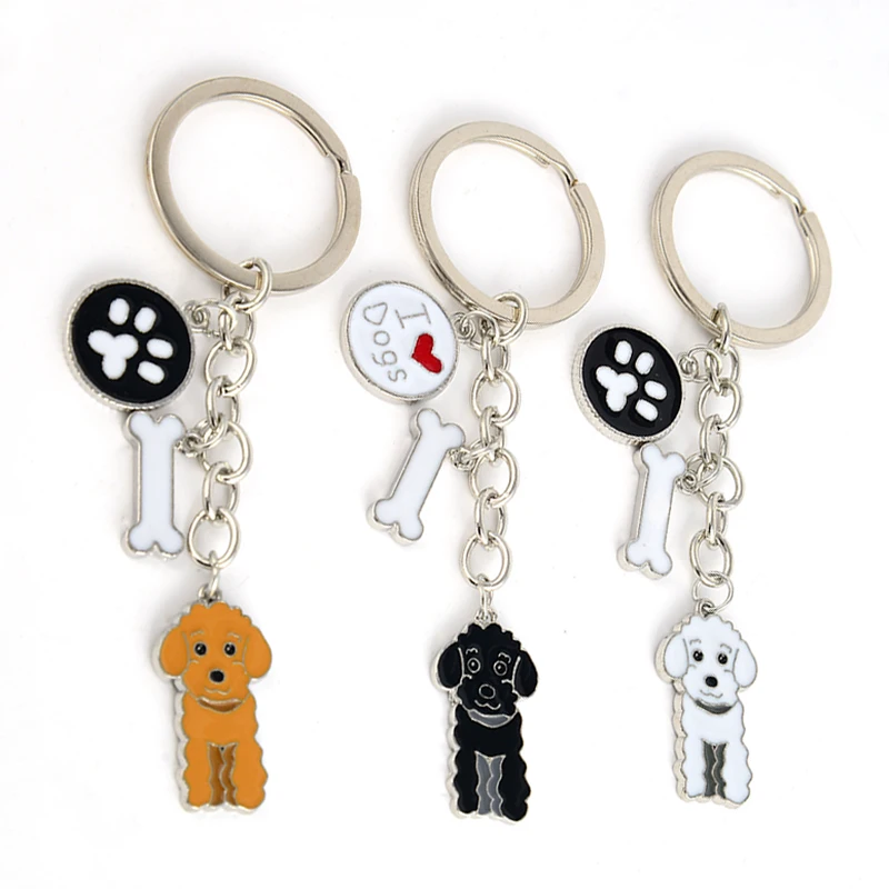 Poodle Teddy Dog Key Chains For Women Men Christmas Gift Metal Bag Charm Car Keychain Key Ring Holder Women Accessories